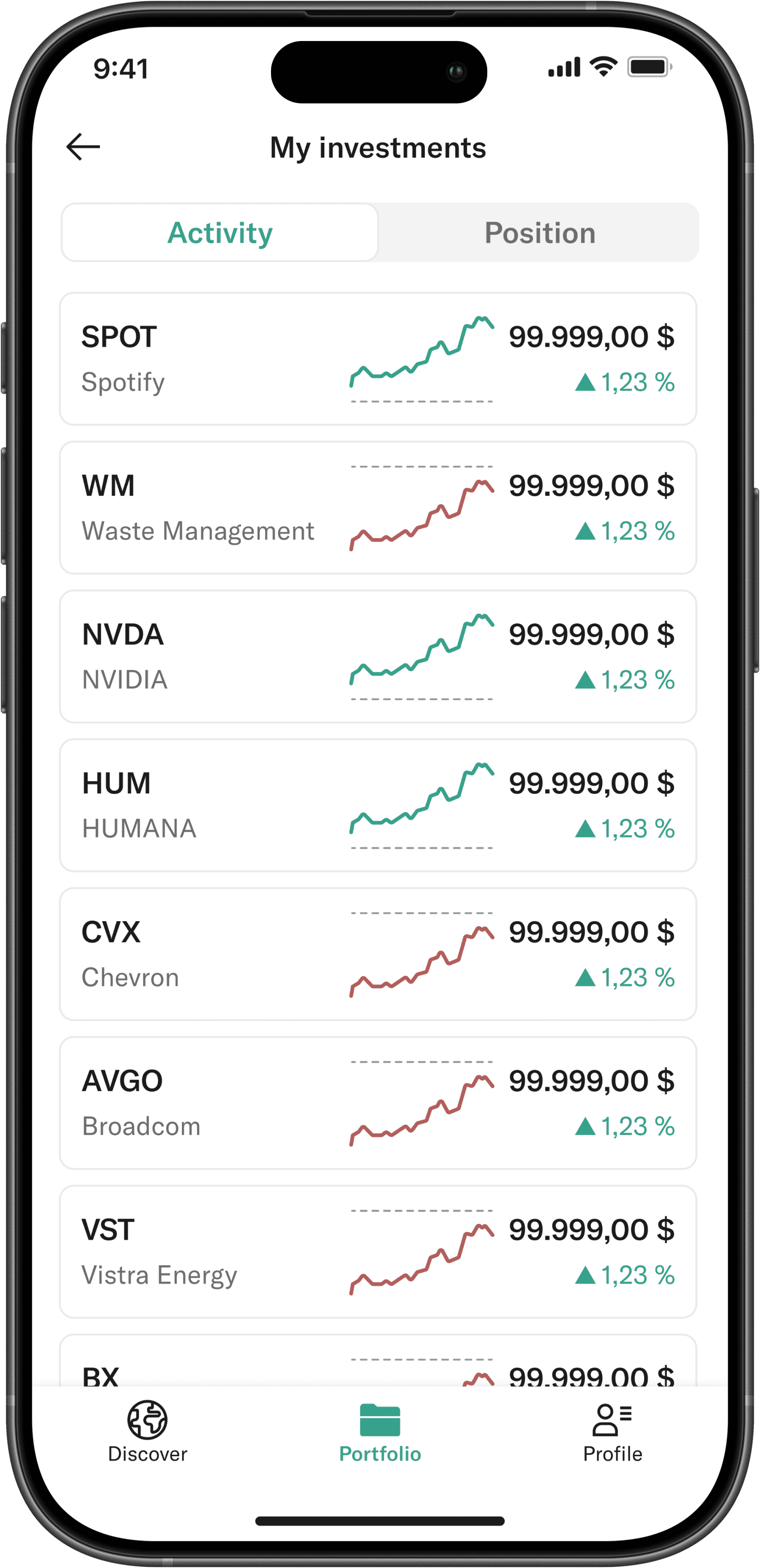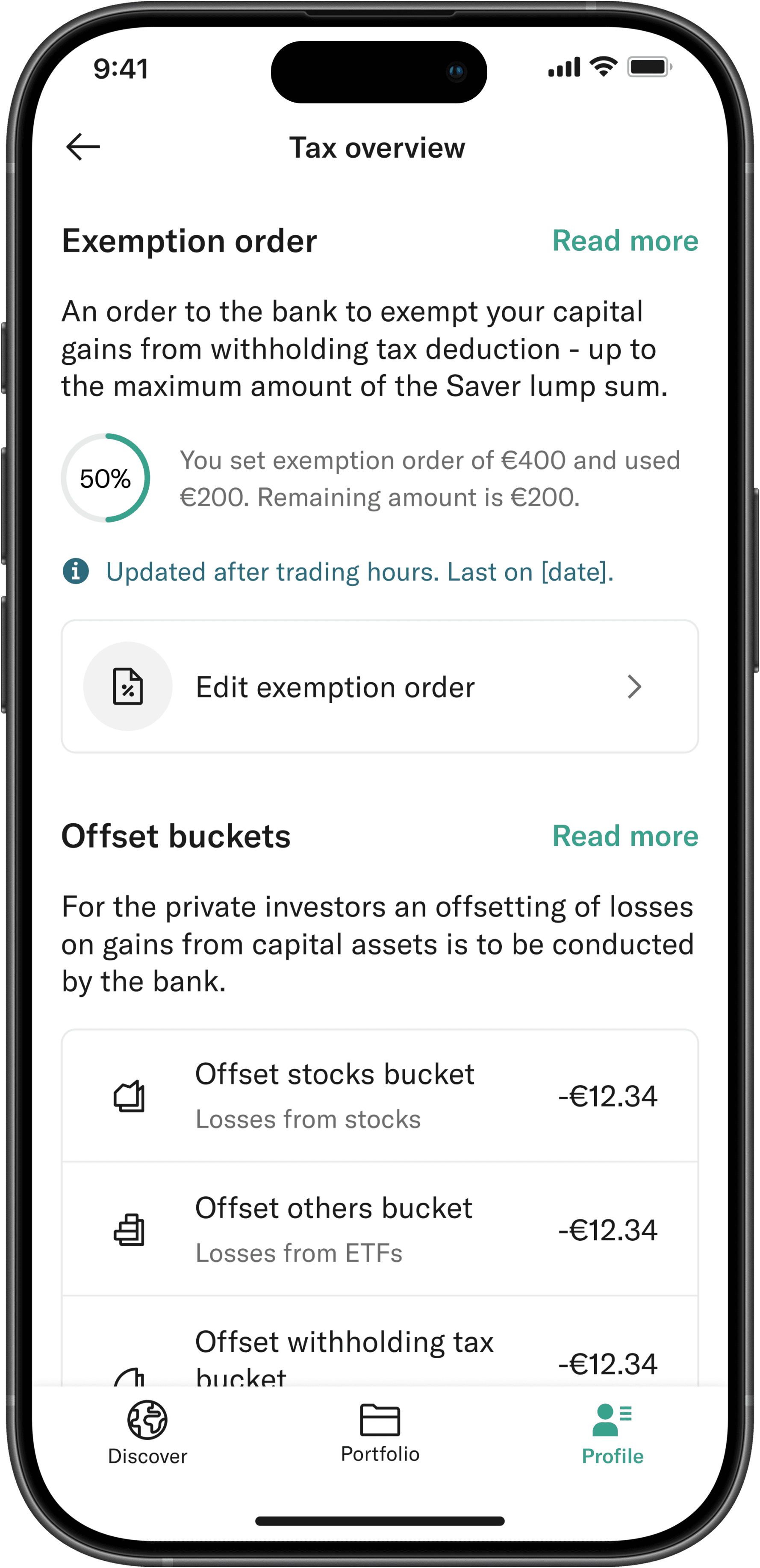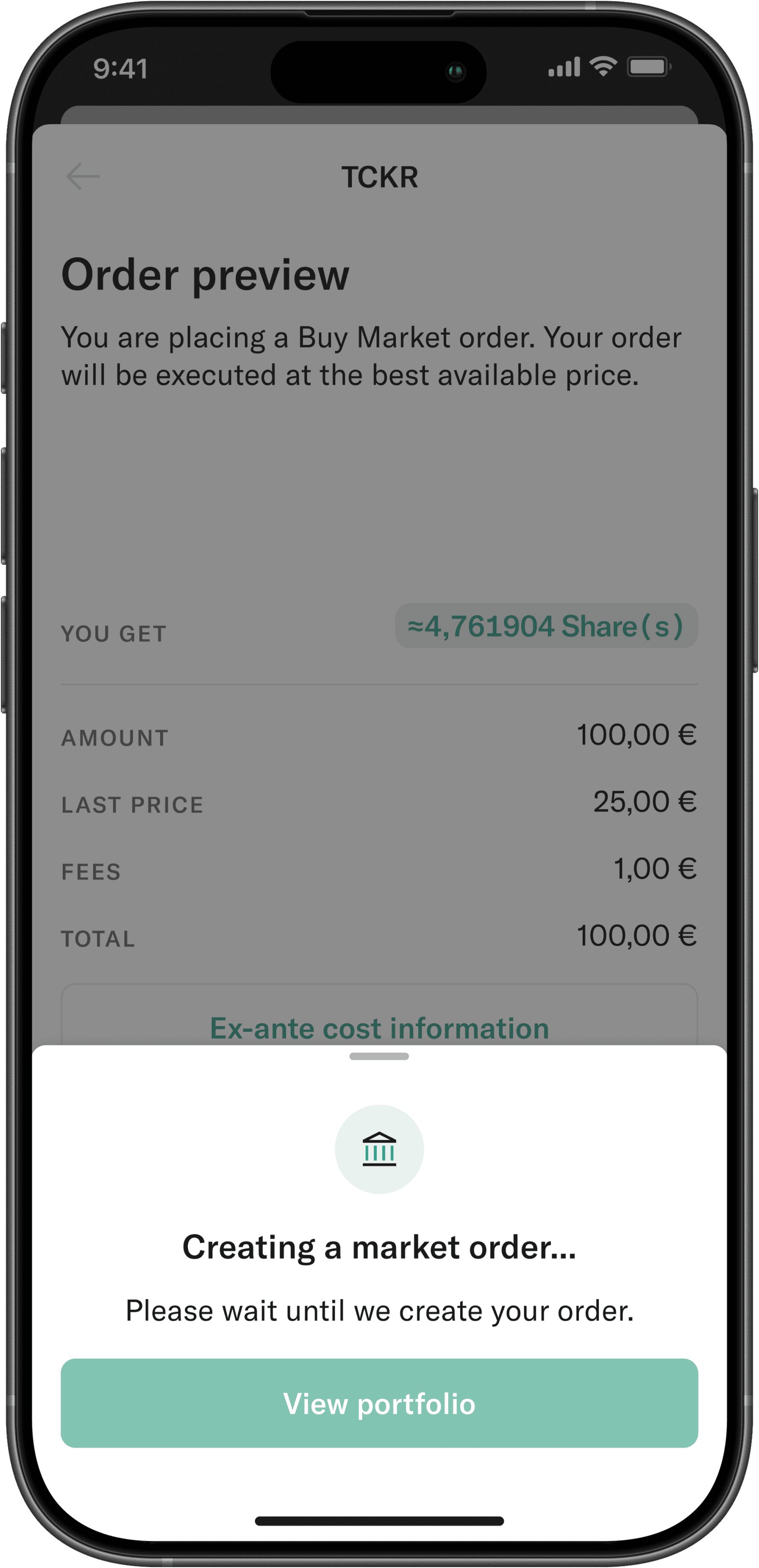 N26 Trading is a mobile stock and ETF trading product built directly into the N26 banking app. It allows users to invest in stocks and ETFs while managing their money in one place, combining trading, portfolio tracking, and legally required tax and reporting flows.