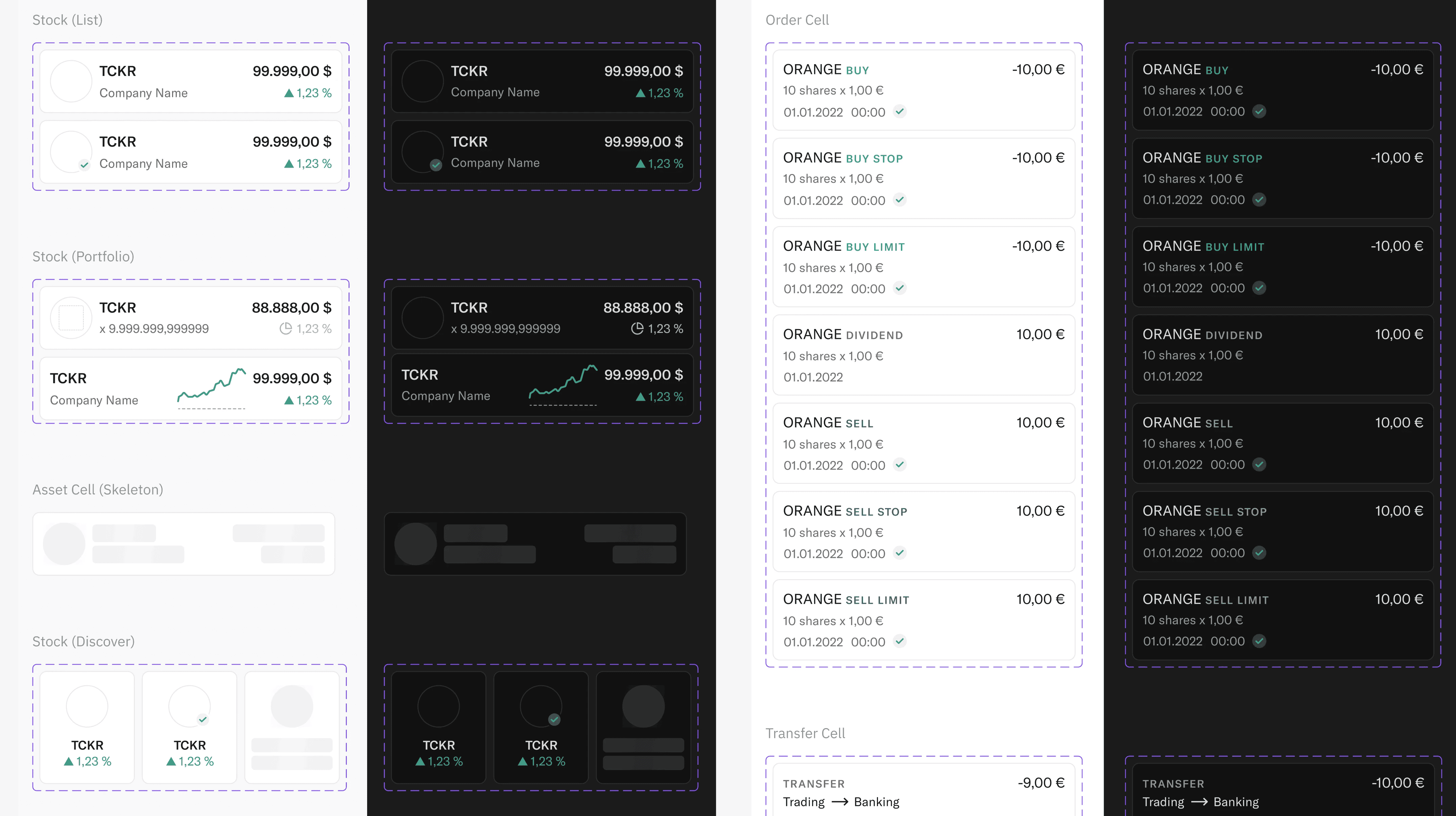 A significant part of the work focused on the design system that supported the trading product. My responsibility was to ensure consistency, scalability, and clear rules that development teams could rely on.