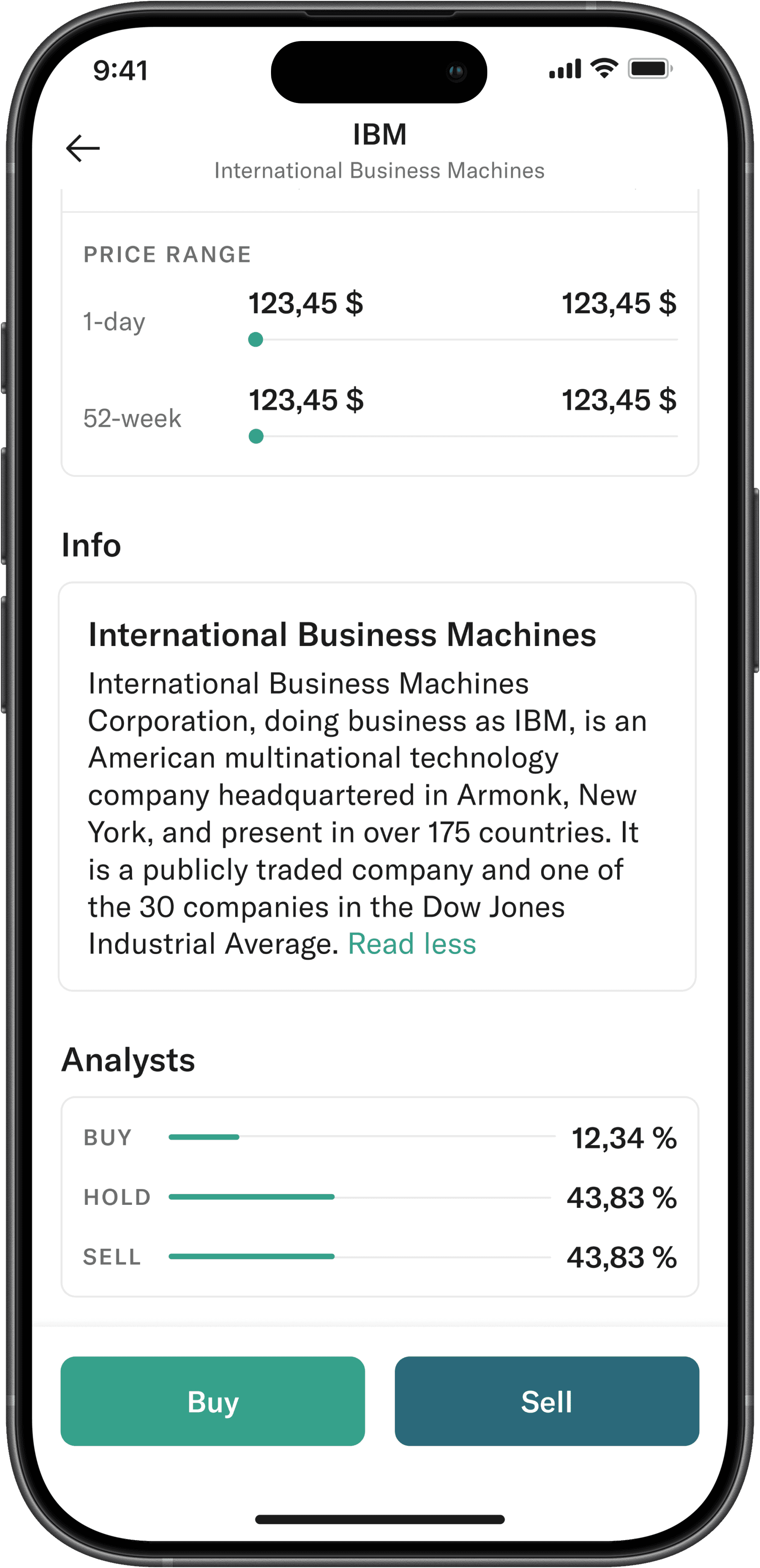 Buy and Sell were given equal visual weight to avoid nudging users toward impulsive decisions.